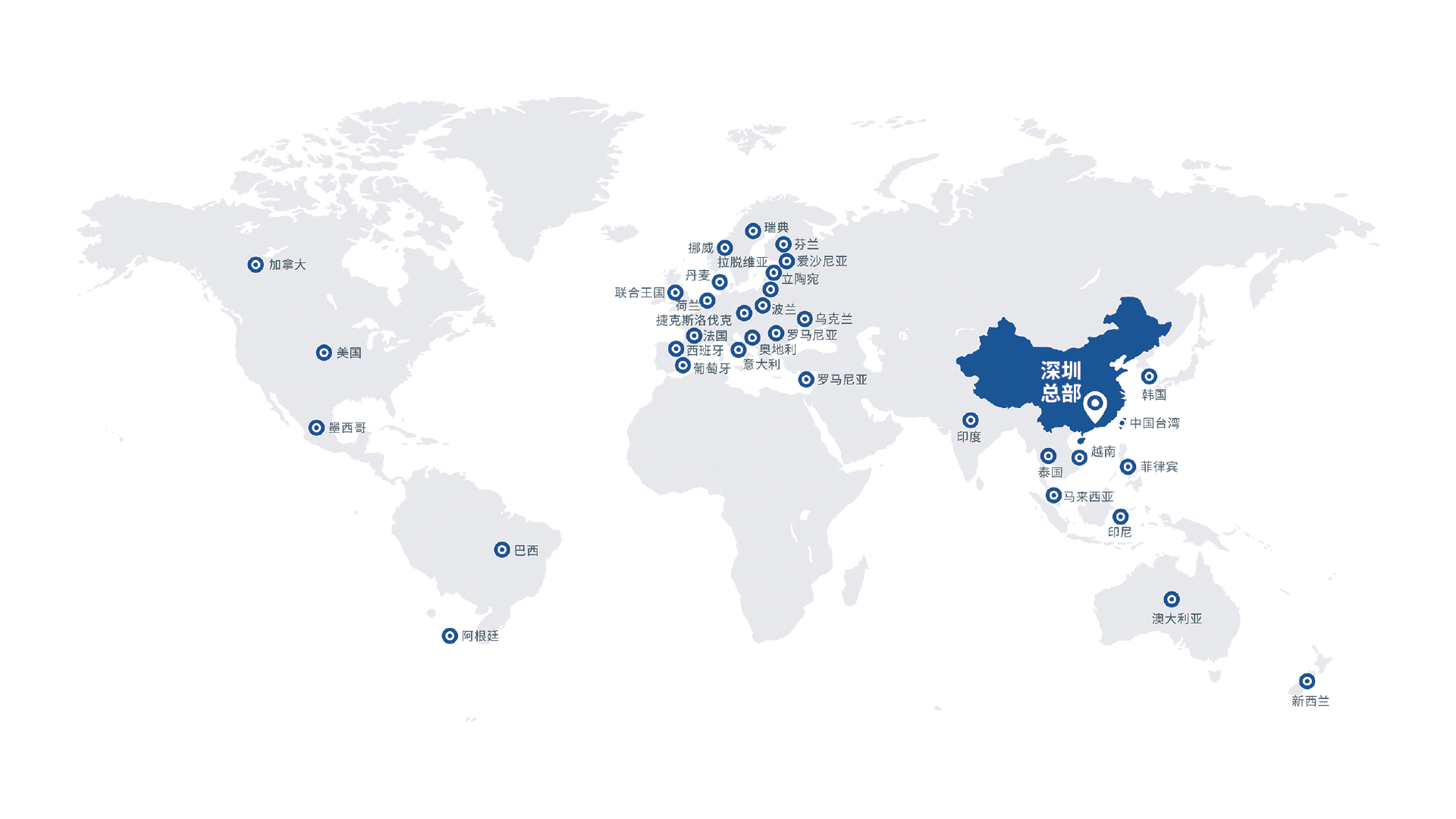 立足于國(guó)內(nèi)深圳、張家港、常州、天津、長(zhǎng)沙、蘇州、濟(jì)南生產(chǎn)基地與備品備件庫(kù),國(guó)內(nèi)外轄180+辦事處,在100多個(gè)國(guó)家和地區(qū)設(shè)立銷售服務(wù)機(jī)構(gòu),為全球用戶提供高品質(zhì)的產(chǎn)品與優(yōu)質(zhì)高效的服務(wù)。